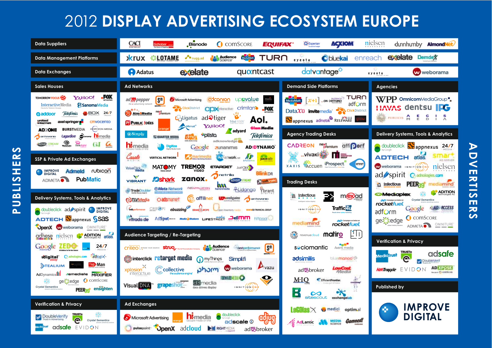 Terence Kawaja, from LUMA partners, who produced the U.S. Display Advertising Market comments: “Ecosystem maps are a great way to frame a discussion around how an industry is structured and where it is going. Improve Digital has done a great job mapping the European landscape.”