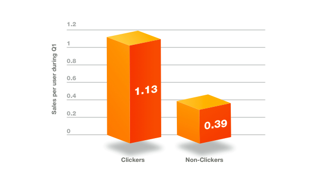 Almost half of regular buyers on e-commerce sites click on Criteo’s online display ads. These clickers buy much more, on average, than non-clickers. Those who click more, buy more.