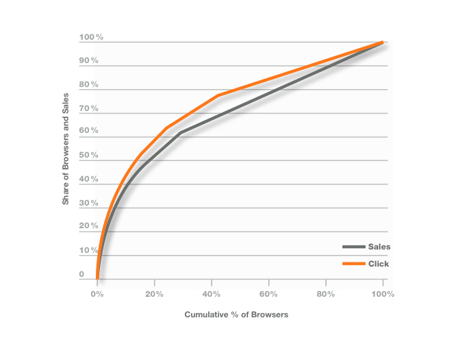 One compelling example is the share of online sales that come from a small number of browsers. This shows a very similar distribution to that of clicks.