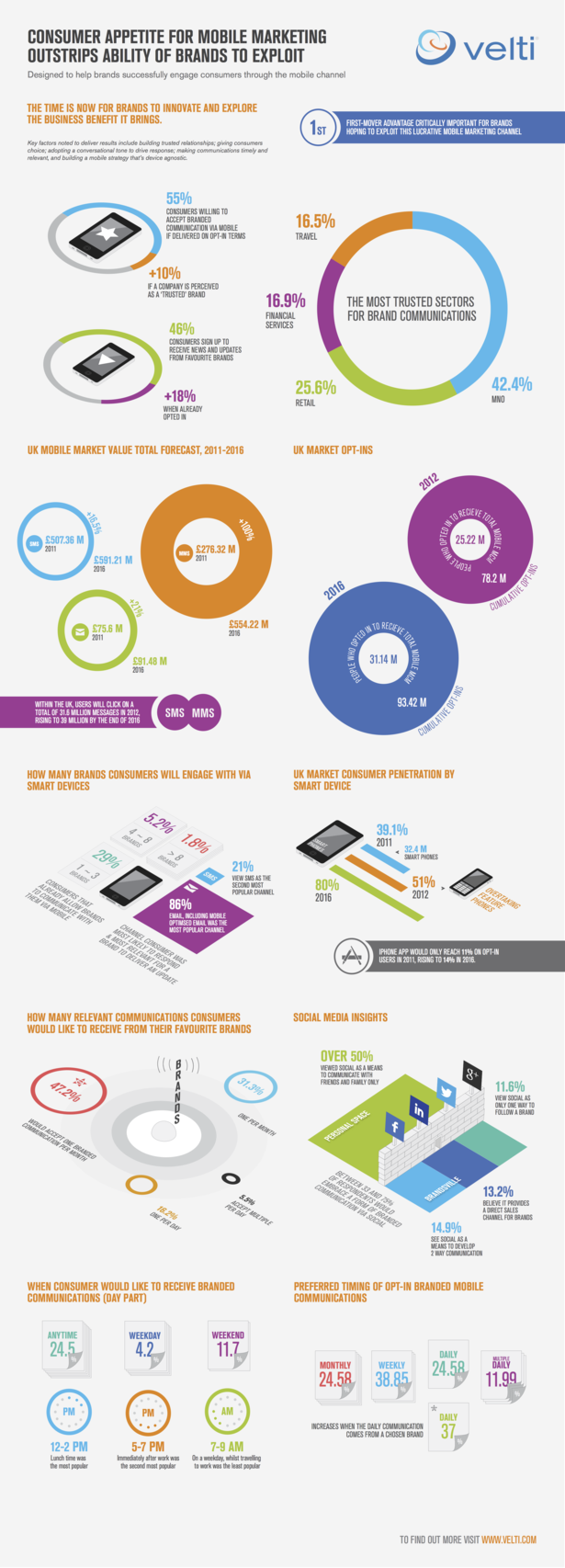 When respondents were asked what type of companies they would opt-in to receive information from, mobile network operators came out on top (42.4%), followed by retailers (25.6%), financial services firms (16.9%) and travel companies (16.5%).