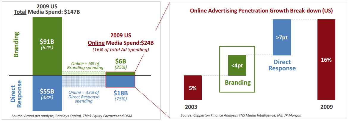 - Growth in online advertising has been historically led by direct response marketing: one-to-one user link allowed for performance based marketing, with search as key growth driver, rather than display.
