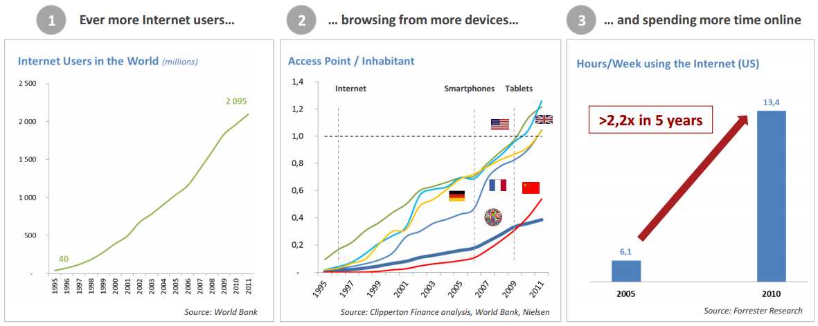 We are in the midst of a momentum shift: new generations of technologies, improved standardisation, decline of traditional players and maturing executives should further accelerate changes. As the distinction between TV and the Internet continues to blur, we expect the main growth driver of this evolution will be video in the broad sense: