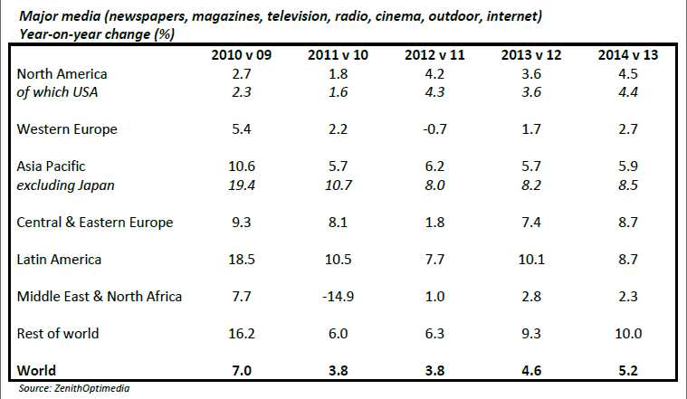 ZenithOptimedia Global Advertising Report: 4.6% Growth in 2013, Led by Developing Markets & Digital Media