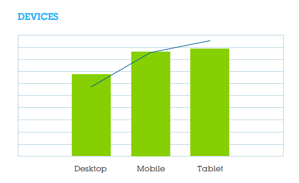 Advertising on tablets attracted the highest engagement with a click-through rate 65% higher than that of desktops with mobile close behind with a click-through rate 50% higher. Until now, mobile devices have only represented a fraction of the total impressions in the European real-time bidding market. Previously, advertisers have also had concerns over the performance of mobile and tablet ads with a staggeringly low 2.1% of the total spend on RTB advertising allocated to these devices.