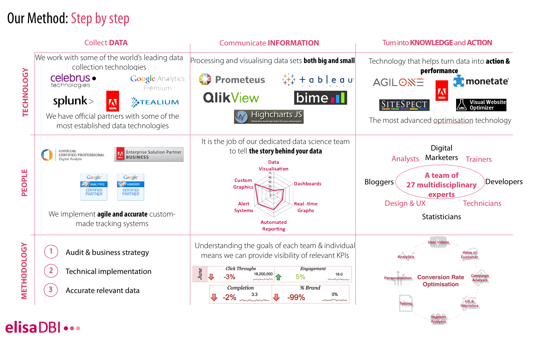 By establishing a process that turns raw data into actions, companies can begin to realise the potential of the data they collect. We see most companies so crippled by the top left corner that they never communicate information beyond MS Excel and barely contemplate action processes such as multivariate testing.
