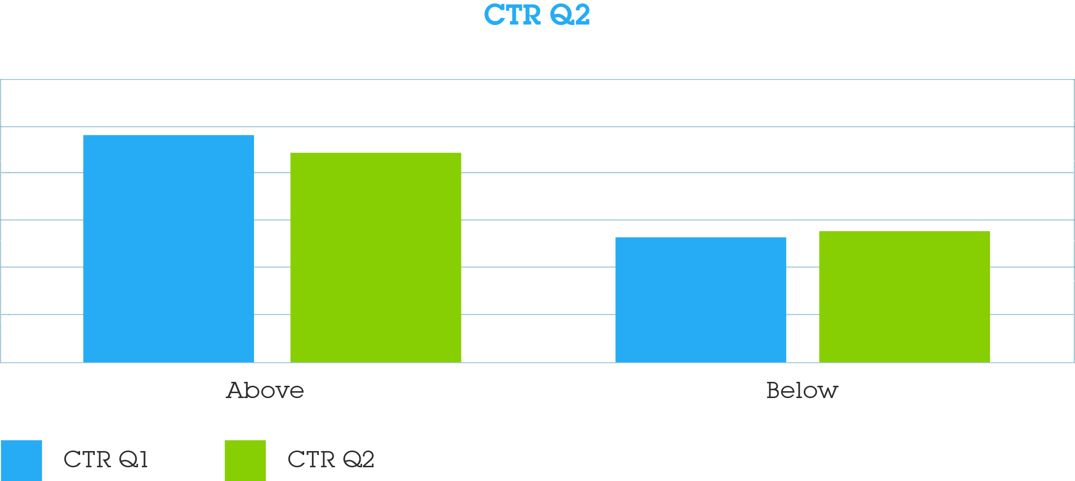The CTR of above- and below-the-fold banner ads narrowed somewhat this quarter, as did the CPM for buying them. However, the cost-per-click (CPC) for below-the-fold ads is 33% higher than those above-the-fold, providing ample justification to opt for ads that users can see without scrolling.