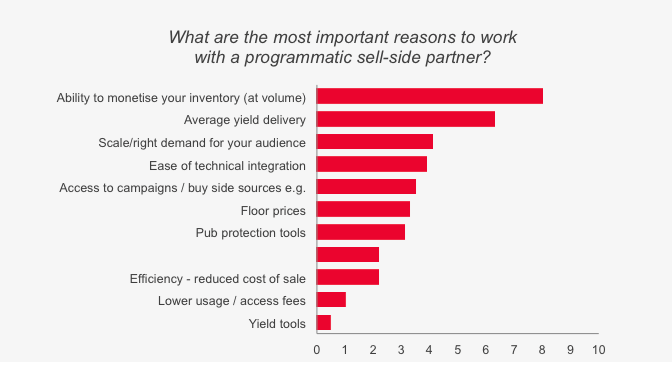 Many publishers are just using their SSP to drive remnant. They are not fully engaged in using programmatic to improve the cost of sale and increase yield across all inventory. Programmatic buying is not seen as a core factor at the moment, but most people see cost savings in the long run.